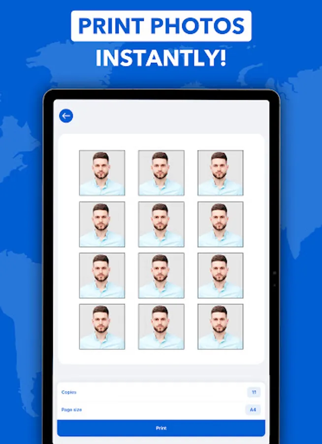 This ID Photo - Passport Photo App (ID Photo maker) supports printing on an AirPrint-compatible printer. The print size can be adjusted in the app if needed. The passport photo will be automatically printed slightly larger in order to facilitate cutting it out.