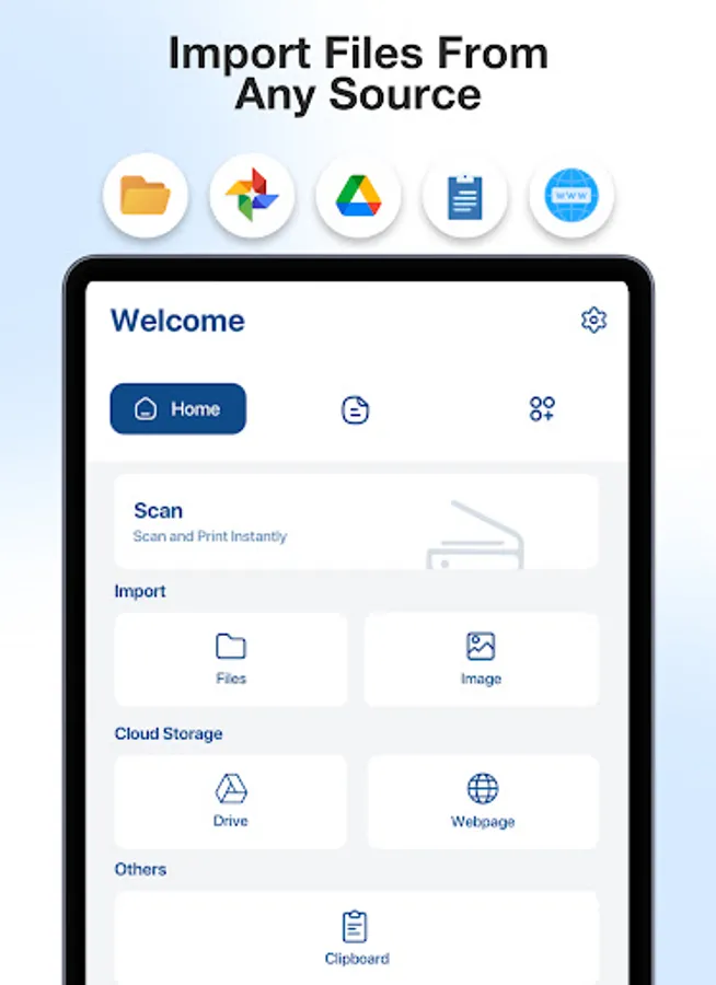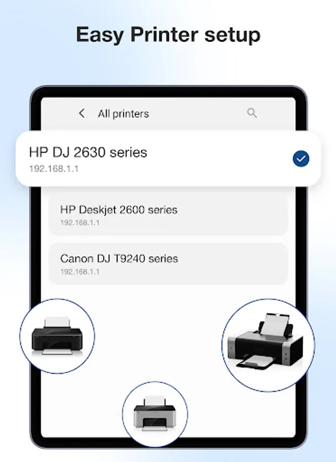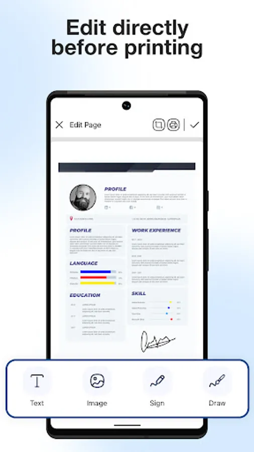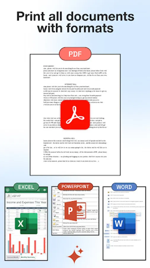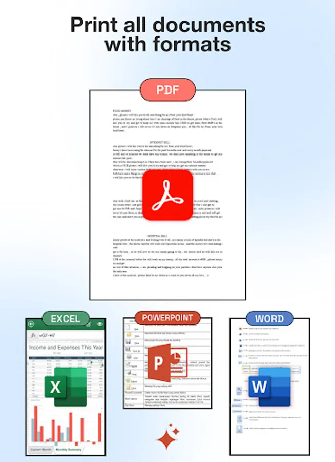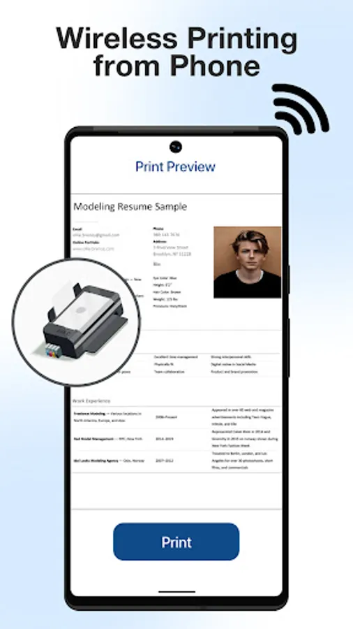 With the Smart Printer: Mobile Print - Print Scanner For Wireless Printers app, you can now instantly scan and print your files directly from your printer. No need to download any additional apps or printing tools. It works seamlessly with almost any WiFi, Bluetooth, or USB printer, allowing you to print images, photos, web pages, PDFs, and Microsoft Office documents anytime, anywhere.