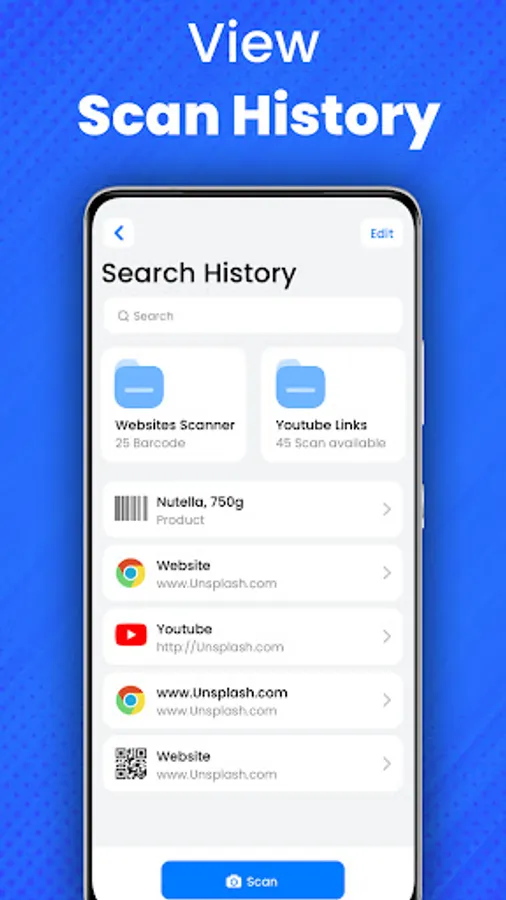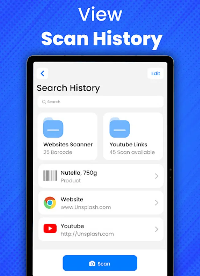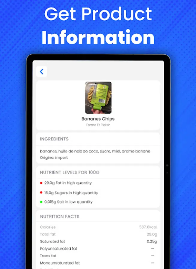 This QR Scanner & QR Code Generator app can scan any kind of QR code, Barcode even you can scan any kind of food item barcode to get its details and other Nutrient Values.