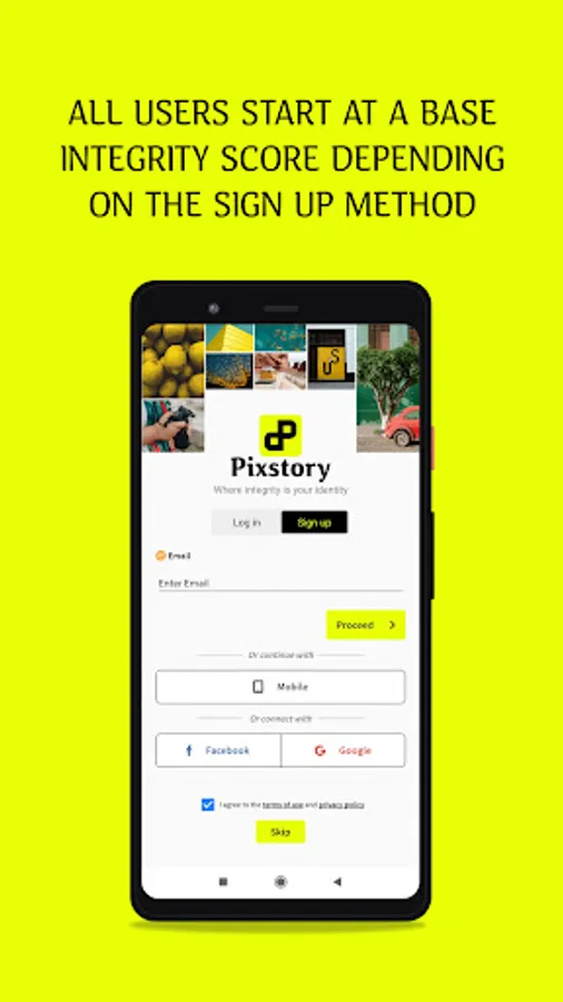 Just login with an OTP using your smartphone, email or through your Apple ID, Google or Facebook ID. You will be assigned a base integrity score based on your signup method.