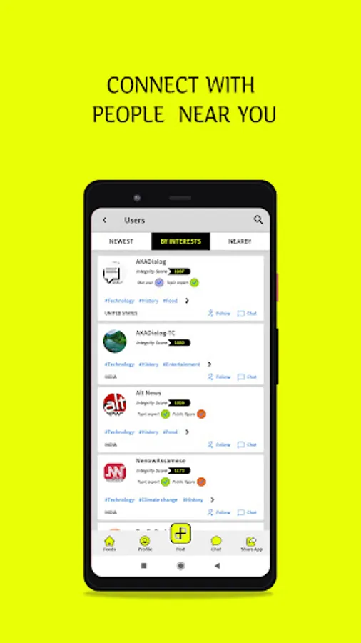 With this app, you can interact with like-minded people or groups. Find fellow Pixstorians in your vicinity by using the “Nearby” tab.