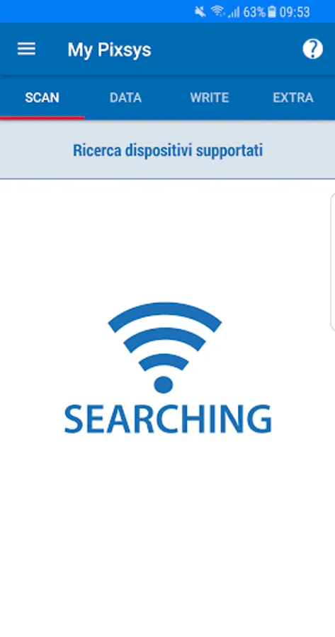 2 - Move the phone back cover as close as possible to your Pixsys device RF antenna, until a specific tune is played and the "scanning" animation changes to "reading". Then, just hold still for a few seconds. In case of low connectivity try relocating your smartphone or refer to the manual in order to find the optimal positioning for each specific model