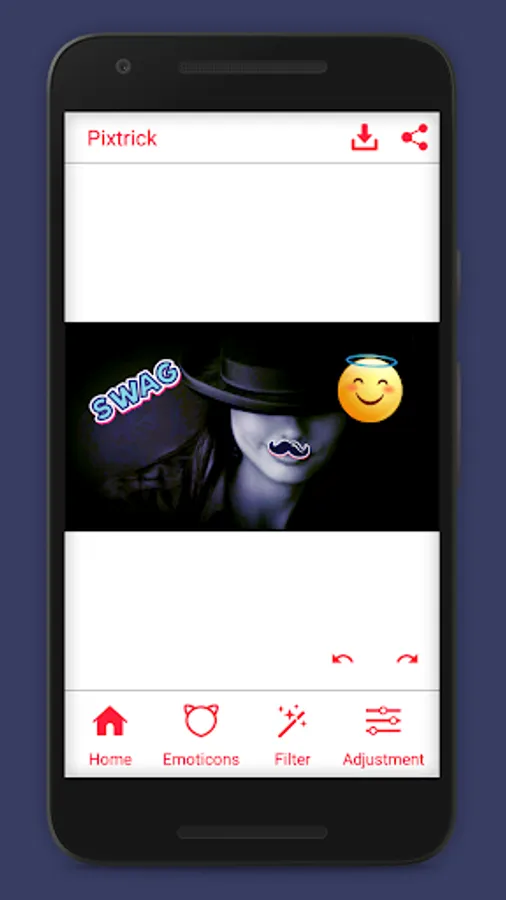 PixTrick is a photo editor app with the bunch of all new stickers and emoji library. You can easily edit any image on one touch. It will be your best partner for create funky images for social media sharing. So What are you waiting for just grab your phone and install it.