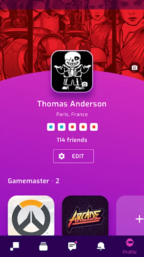 Fill in your player profile with your favorite games, your consoles and your gamertags to get your Pixwoo DNA. This will allow you to easily meet similar Pixwoo members and develop your very own Gamer network.