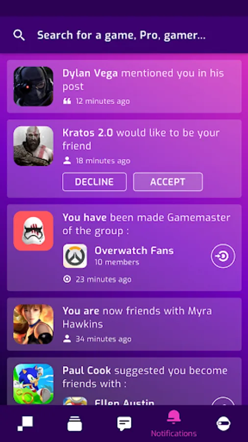 Pixwoo alerts you when a Youtuber or Pro gamer you follow posts information or exclusive videos. You'll also be notified in real time when you have a friend request, suggestion from your network or when a member mentions you in a post.