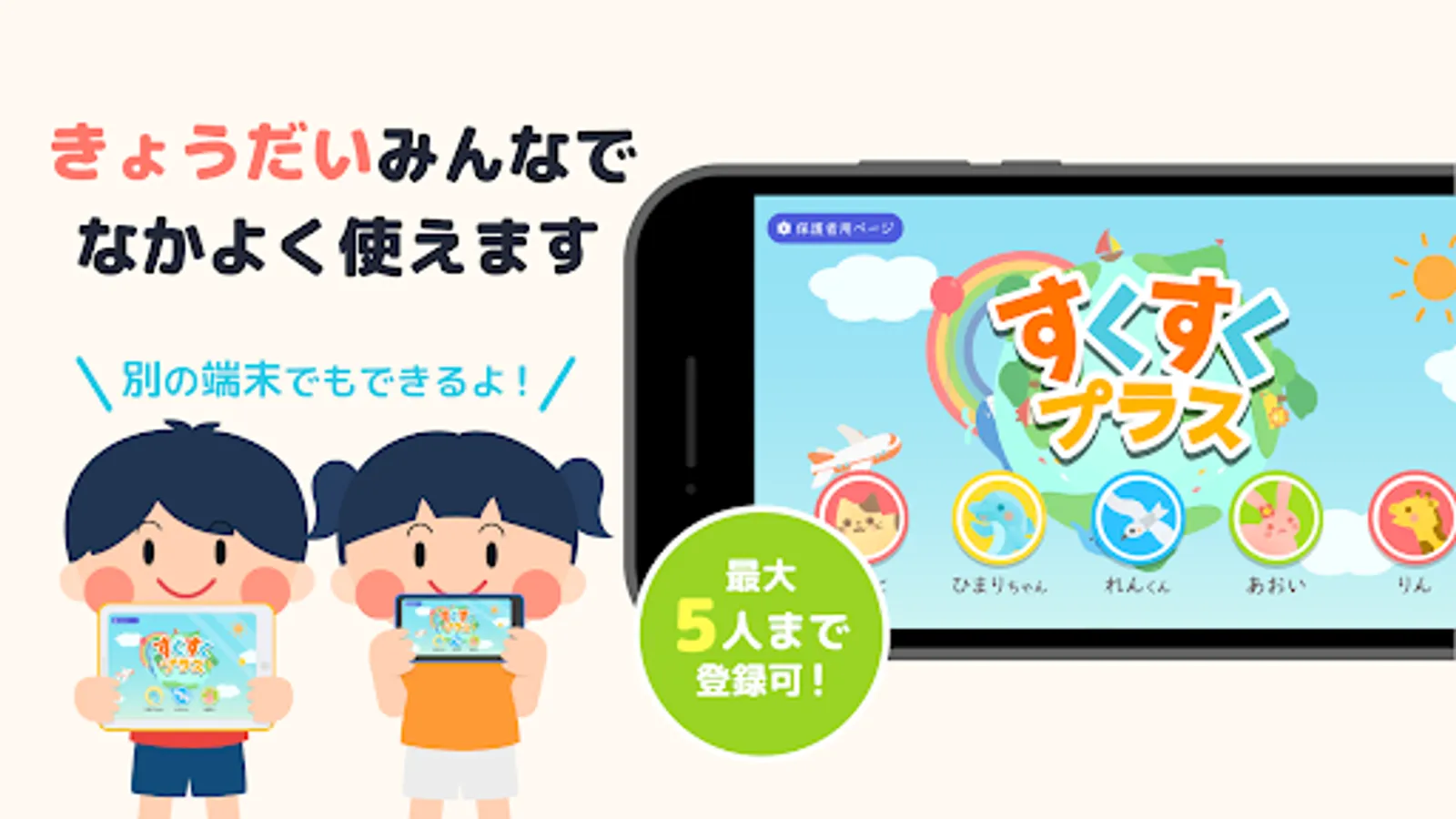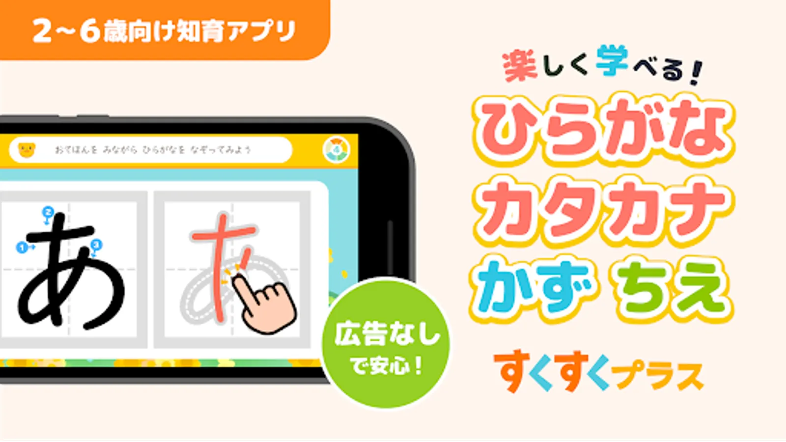 Sukusuku Plus was developed by Piyolog, a parenting record app, with the idea that it would be possible to support children's intellectual development through the app when they were young. While enjoying the game, you can naturally write hiragana, katakana, numbers, understand shapes and patterns, acquire wisdom by remembering and choosing, and enjoy playing this educational app continuously. We hope that you will find it helpful in your child's development.