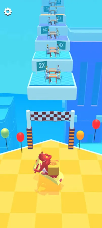 Reach the end of the track and try to collect as many pizzas as possible along the way!