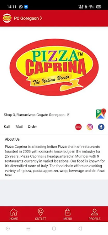 Pizza Caprina is a leading Indian Pizza chain of restaurants founded in 2005 with concrete knowledge in the industry for 25 years. Pizza Caprina is headquartered in Mumbai with 9 restaurants currently in varied locations. Our food is known for it's diversified taste of Italy. The food chain offers an exciting variety of - pizza, pasta, appetizer, wrap, beverage and desserts - that also includes some signature delicacies.
