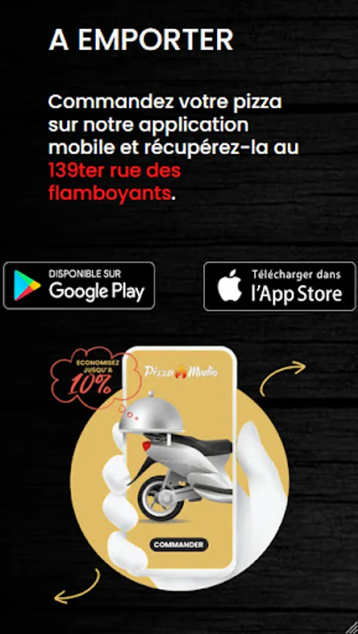 Passez votre commande avec l’application Pizza Mudio et payer en toute sécurité sur notre app. Faites vous livrer ou venez récupérer en restaurant à l’heure de votre choix. Commandez vos pizzas et vos menus à l’avance. Ne perdez plus de temps à attendre.