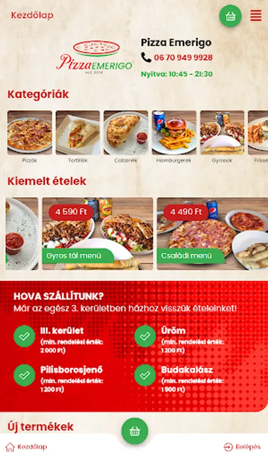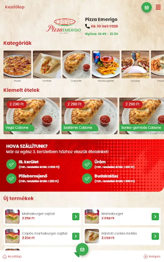 Food ordering and home delivery Budapest III. district, and in Üröm, Pilisborosjenő and Budakalász. Pizzas, burgers, tortillas, roasts, bowls, soups, desserts and more!