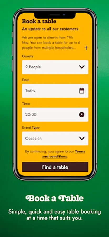 • Find and book a table whilst you’re on the go