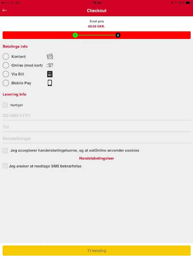 Du kan bruge din eksisterende Pizza Expressen1/eatonline brugerprofil, eller som ny kunde oprette dig i appen.