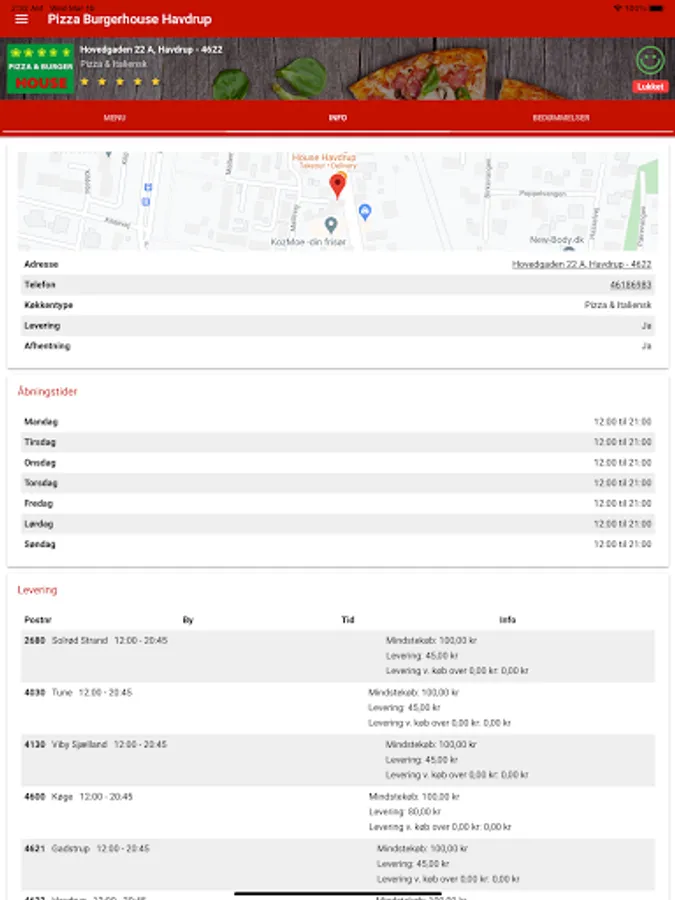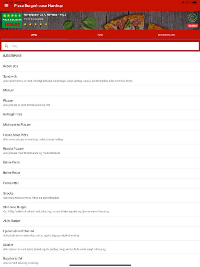 Bestil pizza, burger, pasta, m.m. med få tryk, nemt og hurtigt!