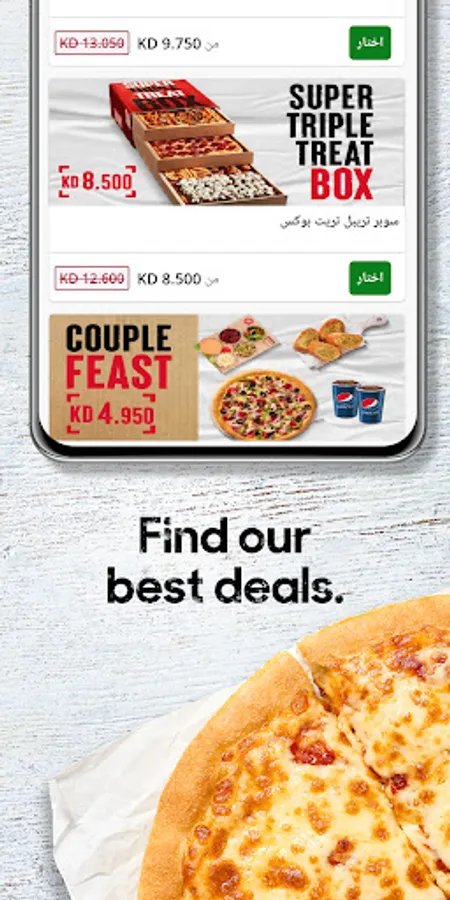 Order pizza online on our Pizza Hut Kuwait app and get a pizza that is both delicious and value for money.