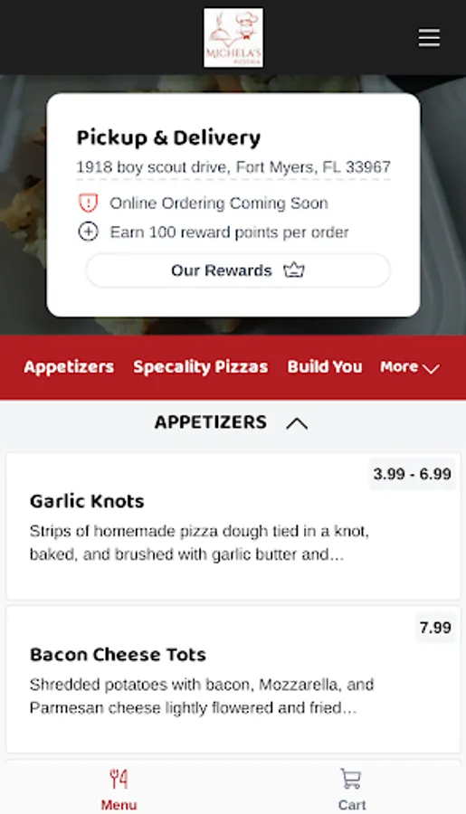 The official mobile app for Michelas Pizzeria in 1918 boy scout drive, Fort Myers, FL 33967!