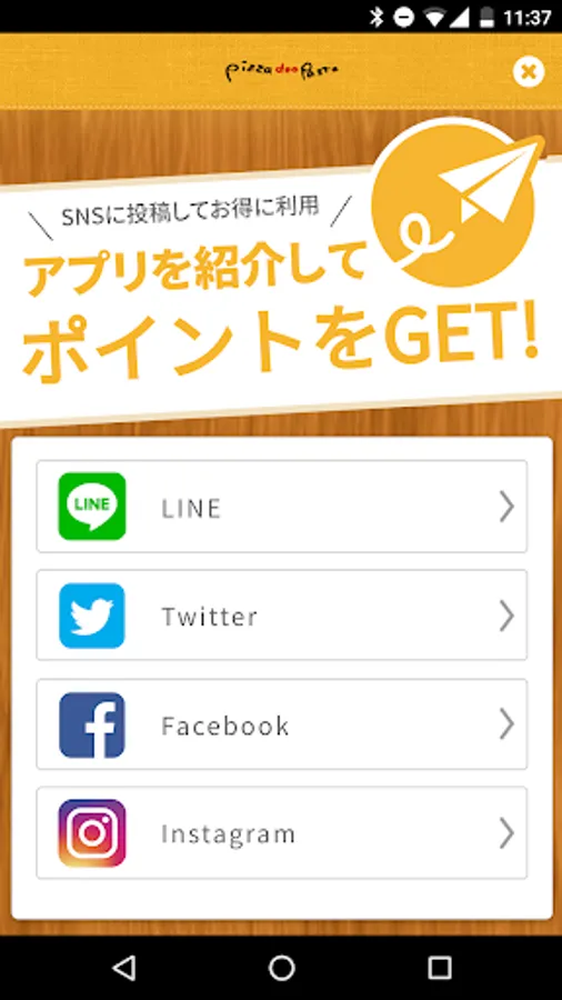 You can introduce to your friends Pizadepasuta of the app through the SNS.