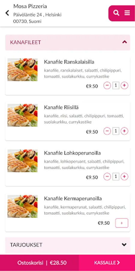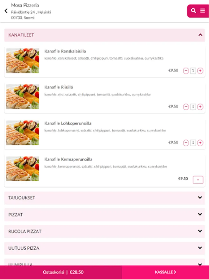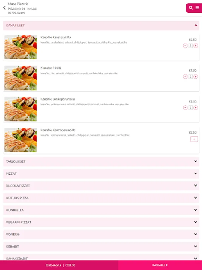 Ei aikaa kokata? Tuttu tunne. Tekeekö mieli hampurilaista, salaattia,pizzaa tai kebabia? Mosa Pizzeria toimittaa missä tahansa oletkinnopeasti ja helposti. Kokeile nyt!