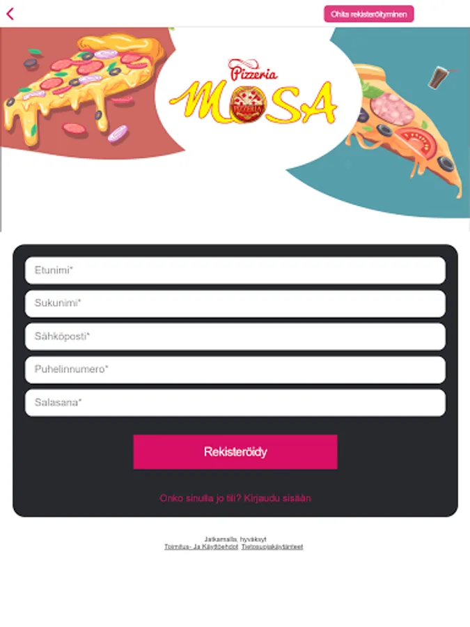 Jos sinulla on kysymyksiä liittyen palveluun voit lähettää meillesähköpostia osoitteeseen info@mosapizzeria.fi