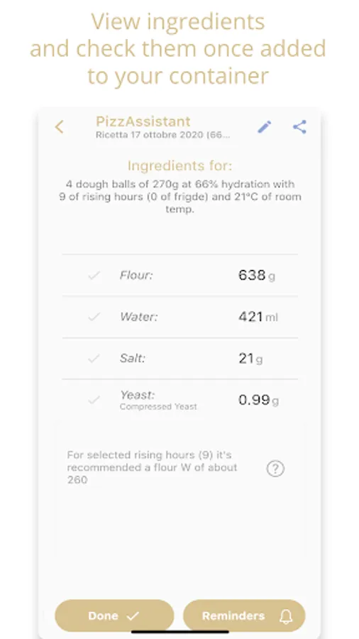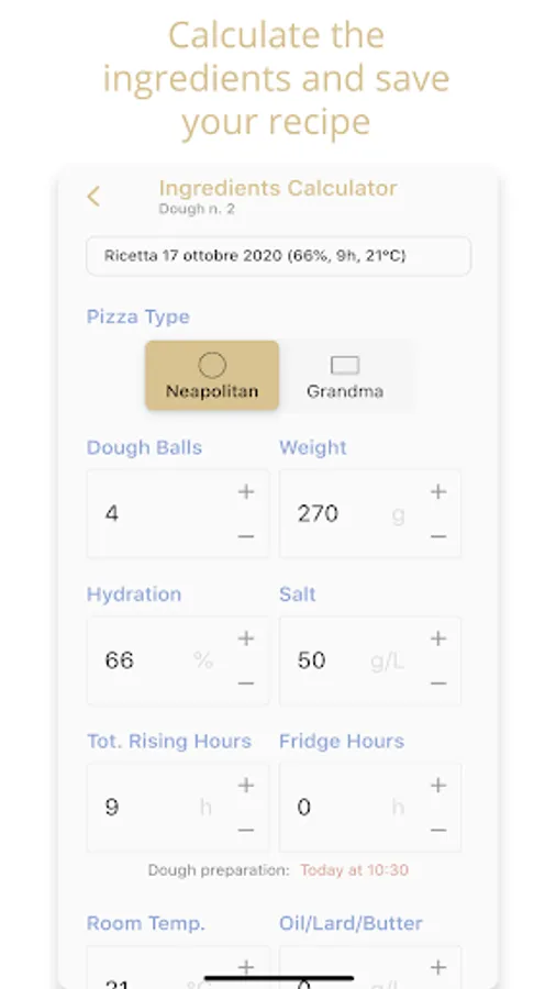 You can calculate ingredients, save your custom pizza/bread recipe and re-use it whenever you want!