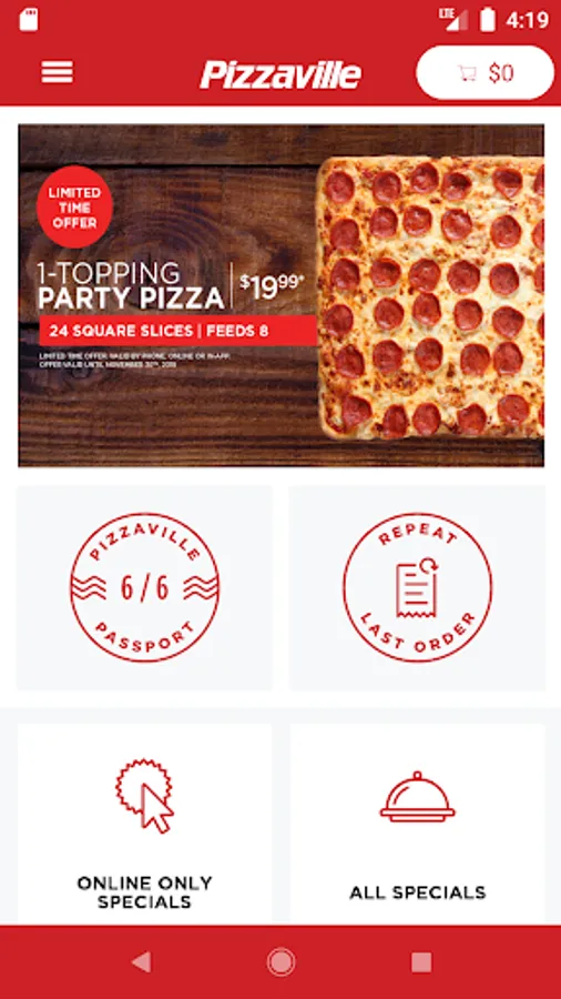 Pizzaville introduces the most advanced mobile ordering application of its kind. You can now use your Android Device to order your favourite pizza with 3 taps. Ordering pizza is easier than ever!