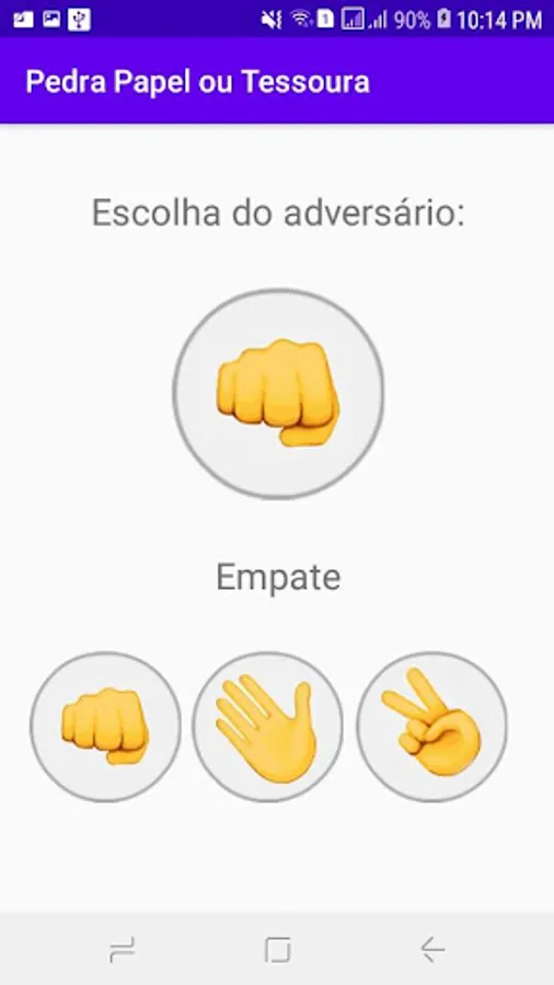 Stone, paper and scissors, also called in some regions of Brazil, jokempô is a recreational and simple hand game for two or more people, which does not require equipment or skill. In this case, you will compete with the application.