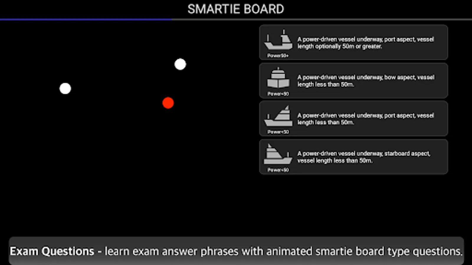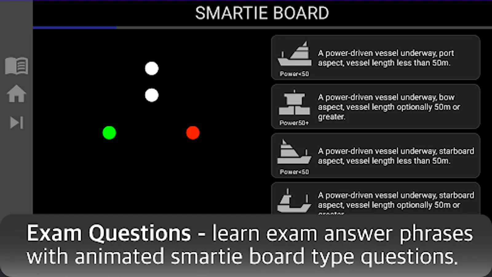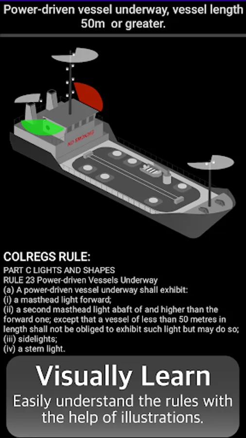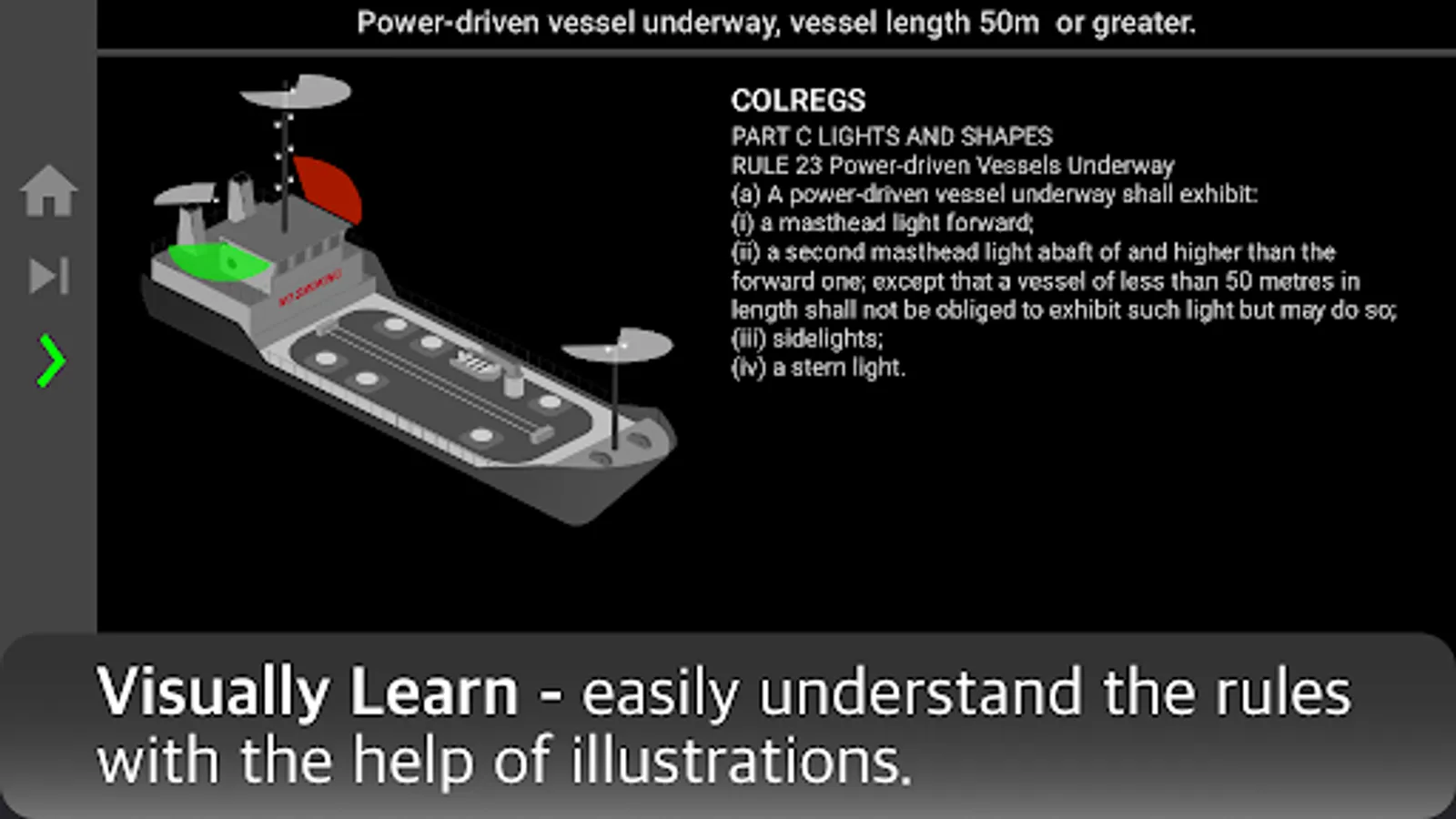Prepare for your professional maritime qualifications effortlessly with Master-Nav! Our cutting-edge application is designed to teach you the COLREGS in an intuitive and engaging way. Say goodbye to slogging through the rule book and hello to effective learning and revision with our unique interactive visuals, memory aids, and exam answer phrases.