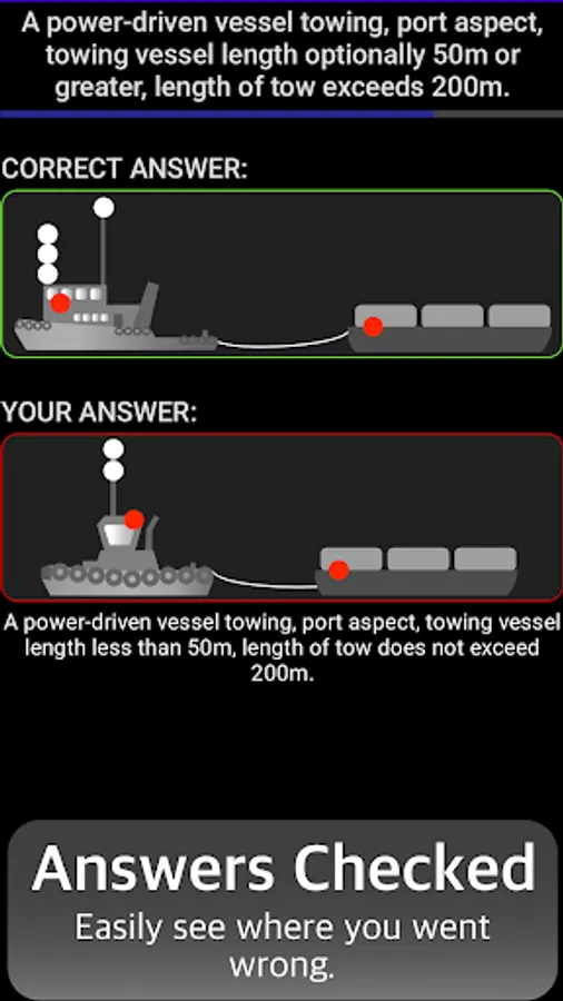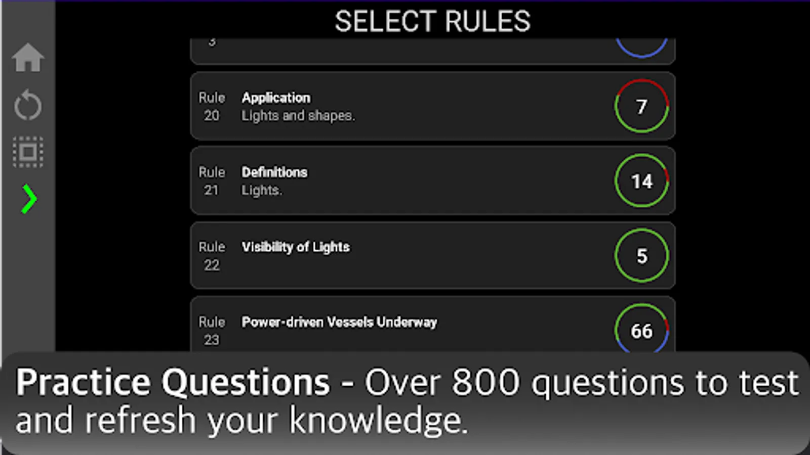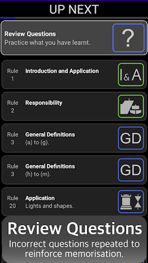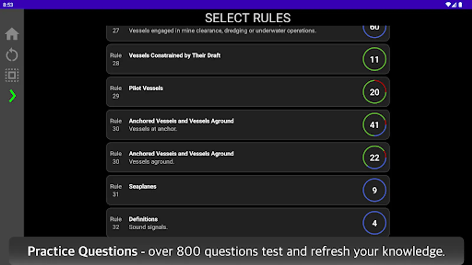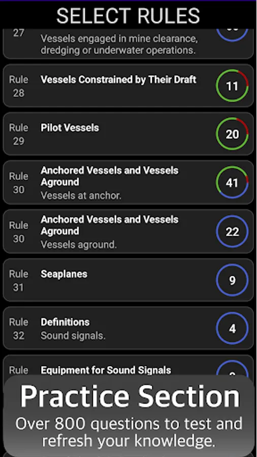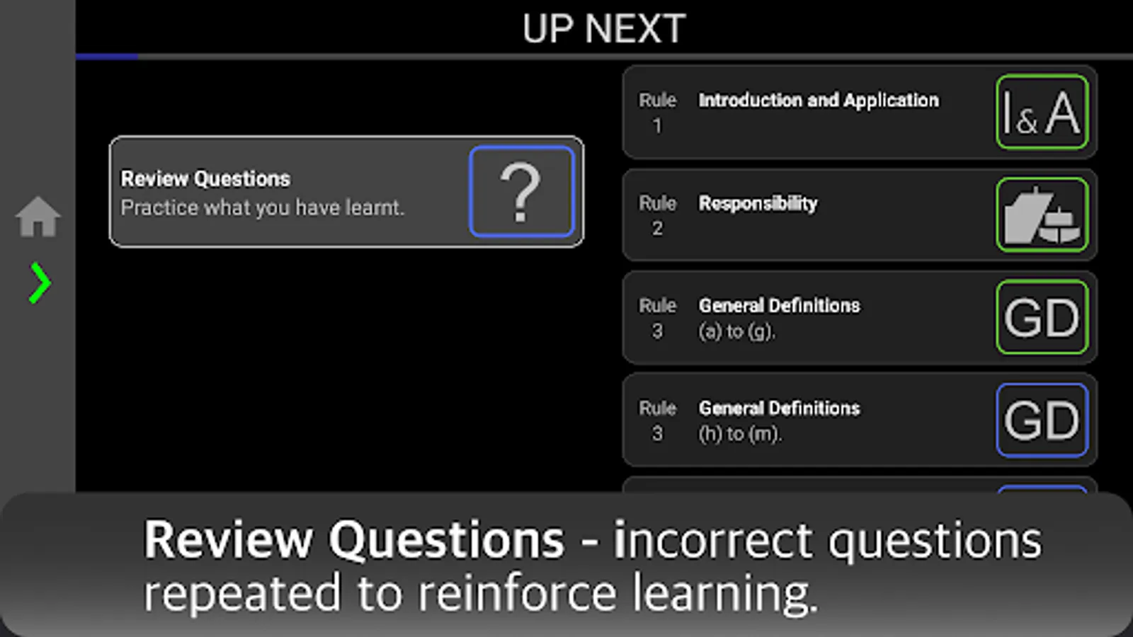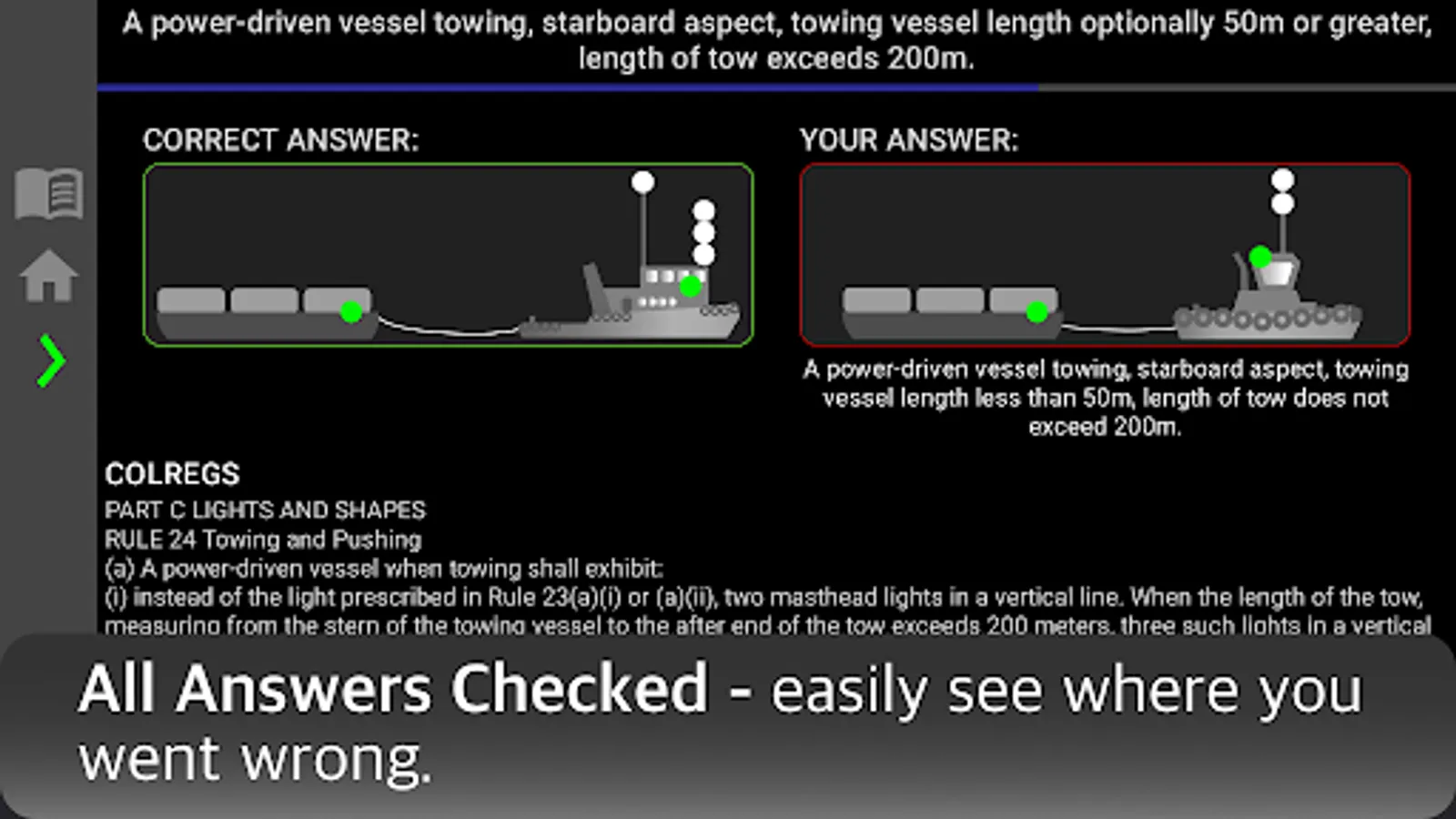 As you progress through the app, you'll encounter optional review questions to assess your understanding and ensure you have fully memorized the rules. With a vast array of over 790 questions in various formats, each accompanied by clear graphic answers highlighting your mistakes, Master-Nav reinforces your knowledge repeatedly, making it effortless to memorize and refresh the rules.