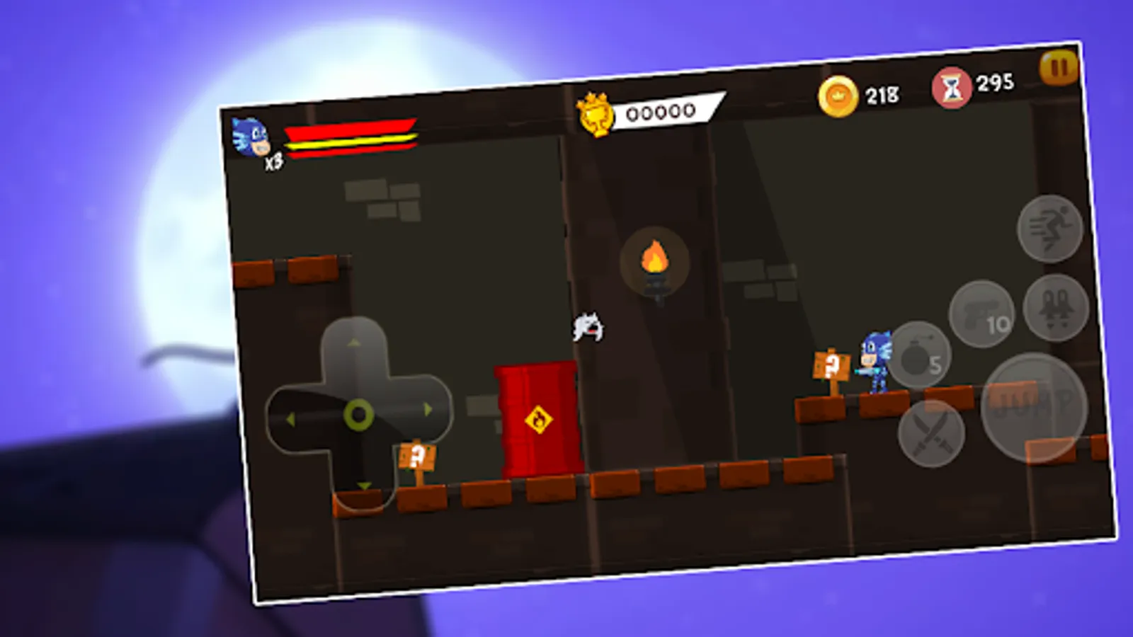 PJ'c Super Hero Masks Battle Adventure Game are beautifully designed the enemies are diverse, the king is very strong, the masks rules are easy, the graphics are captivating, the music moonlight and voice are soft.