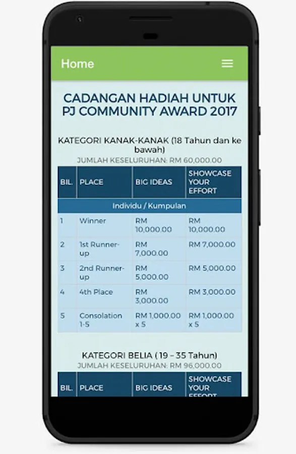 PJ Sustainable Community Award 2017 is an initiative of Majlis Bandaraya Petaling Jaya (MBPJ) which offers prizes in the form of development grants worth RM261,000 to winners with the most impressive ideas to improve the city of Petaling Jaya. For more details, call 03-7956 3544 or visit www.pjkitasca.my.