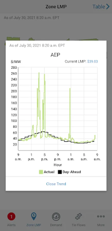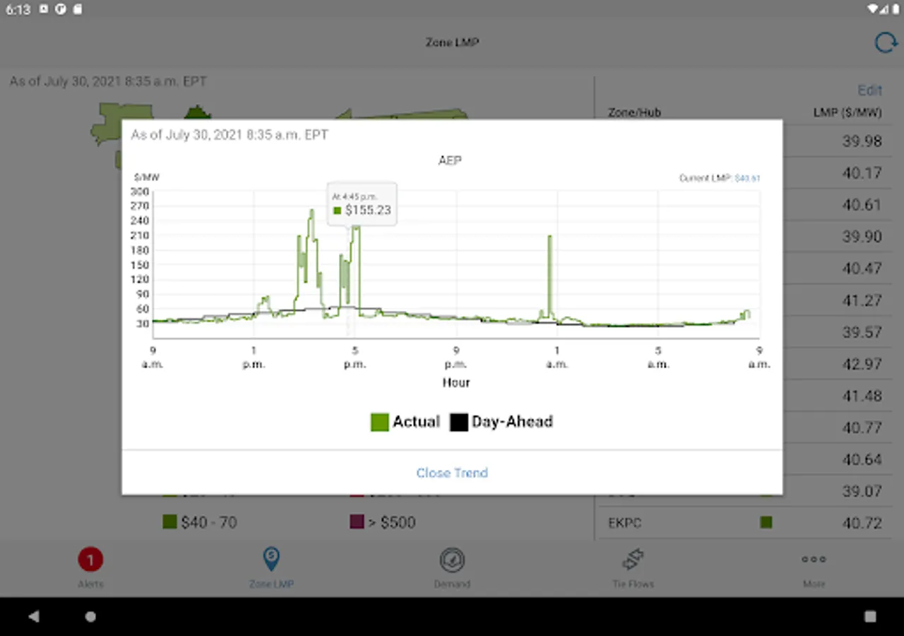 • Receive alerts when wholesale power prices in your area reach the level of your choosing