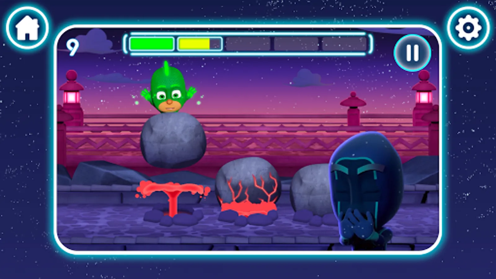 • Defend the PJ Masks HQ from the Ninjalinos and their Sticky Splats