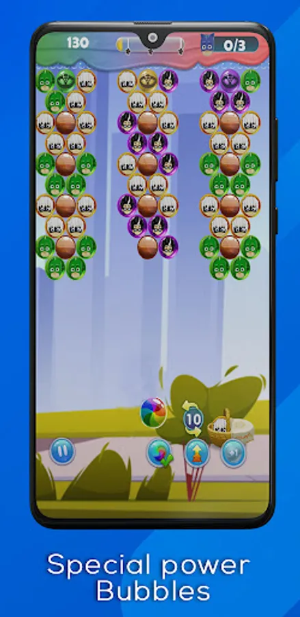 Complete levels and watch ads to earn maximums coins. Spend coins to use different boosters like Long Line Target, Next Ball and Any Color Ball. Stay full of lives to enjoy a long-lasting game-play experience. Smooth animations and colorful interface of bubble shooter fun pop game keep your interest alive. However, this smash bubble game is one of the best masked boys game for PJ fans.