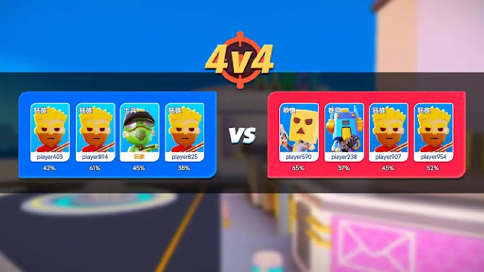 The game operation is simple and easy to use. 4v4 multiplayer competition on the same stage, pay attention to teamwork! The 3D game screen is exquisite and full of shock! There are many characters and weapons, and various special effects, come and experience it!