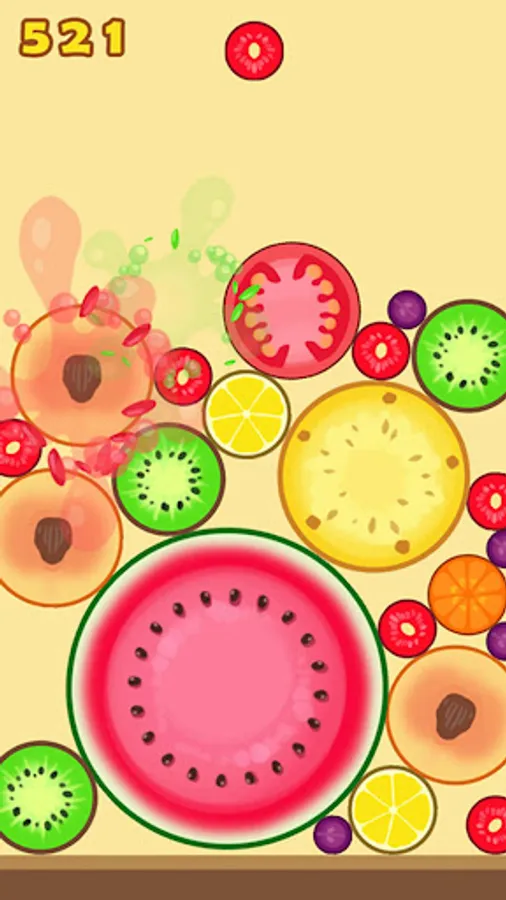 Casual elimination synthesis mini-game, the same fruit can be synthesized into a big fruit, different fruits are squeezed out before each other, small fruits become a big fruit step by step, you can get points during the synthesis, come and try how many points you can get!