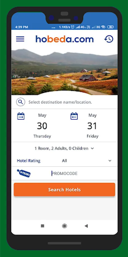Hobeda.com works with a simple and intuitive booking process of a 3-step booking process - Search, Book & Pay!