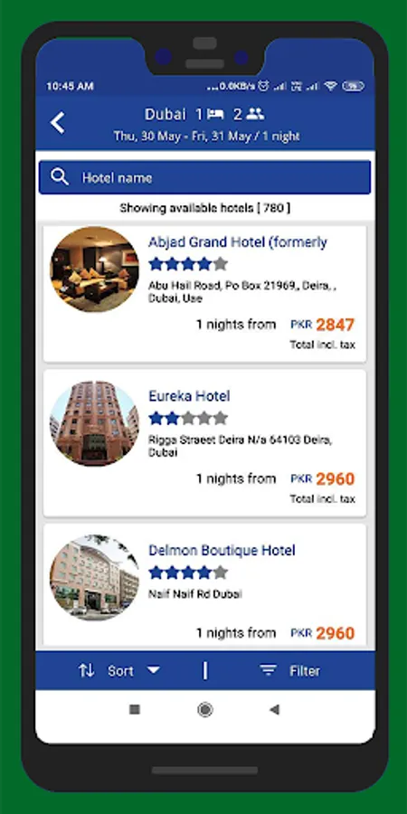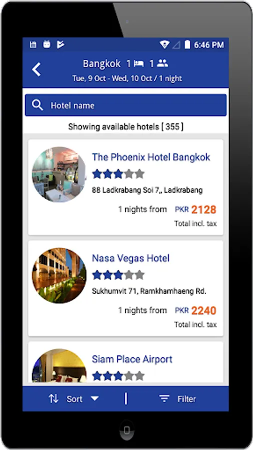 • Filters available for specific hotel name search, star rating and many other useful options.
