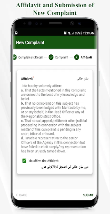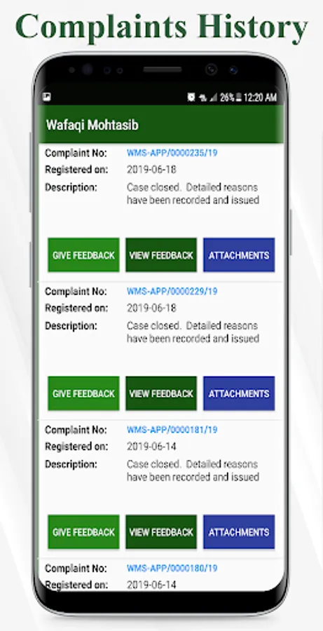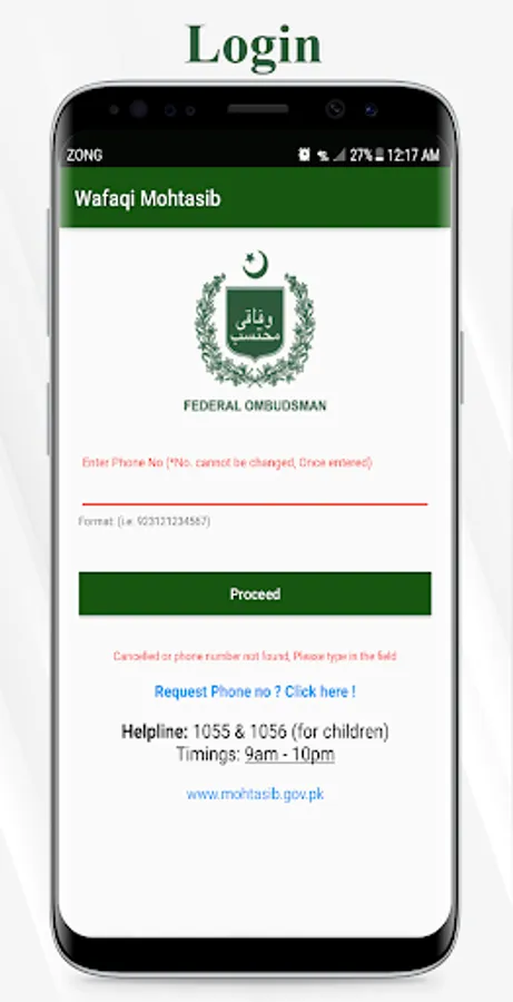 This App connects general public with the Wafaqi Mohtasib Secretariat and allows them to lodge their complaints against federal government agencies. The list of agencies is provided in the App. The complaint is registered online and becomes part of the Complaint Management Information System of the Wafaqi Mohtsib. You will receive an SMS within minutes of lodging a complaint which will confirm the registration of complaint. You can select either head office (Islamabad) or any regional offices (Lahore, Karachi, Peshawar, Quetta, Hyderabad, Sukkur, D.I. Khan, Abbottabad, Bahawalpur, Multan, Faisalabad, Gujranwala and Faisalabad) nearest to you and your case will be heard at the selected station. The App shows the status of your case at each stage, and on conclusion of hearing, you can also view or download finding of the Wafaqi Mohtasib in your case. For any assistance, please call our helpline 1055 between 9:00 AM to 10:00 PM (PST) or visit our website www.mohtasib.gov.pk. Children or on behalf of children, complaint on any children issue can also be filed with this App.
