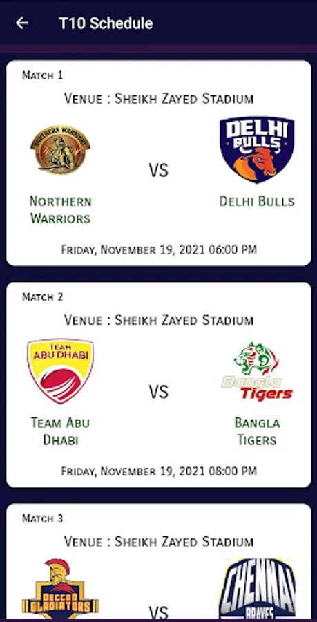 T10 League is a ten-over format cricket league in the United Arab Emirates . The league is approved by the Emirates Cricket Board. Matches are 10-over-a-side and the duration of each match is 90 minutes. The tournament is a round robin followed by Eliminators and the Final.