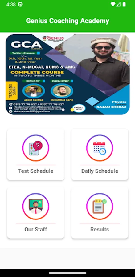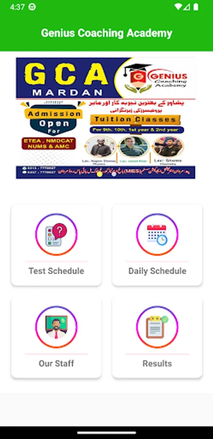 Genius Coaching Academy Mardan official android app for timetable exam schedule and online results.