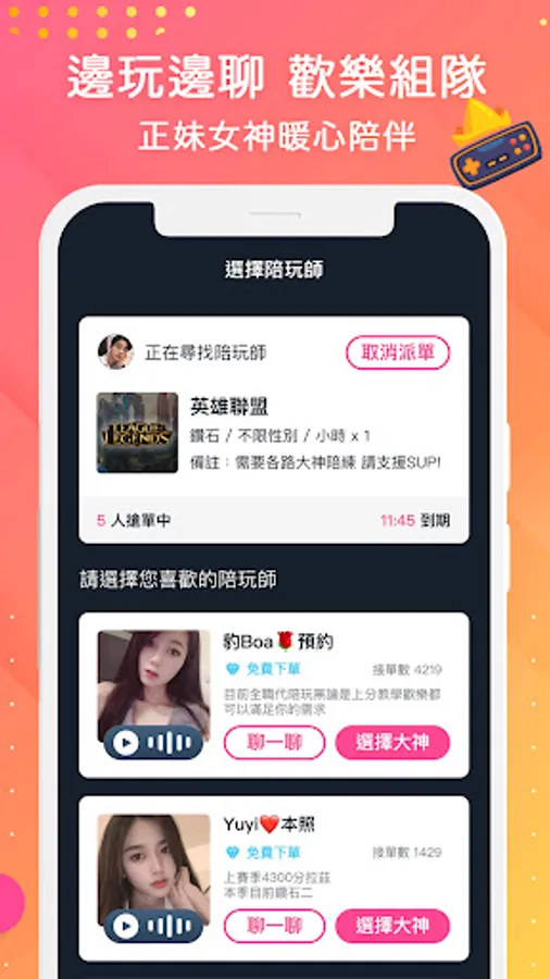 A large number of game types, a large number of high-quality game gods, young brothers and sisters are waiting for you to choose a team, 24 hours a day, anytime, anywhere voice appointments, improve the fun of the game, and find your sweet CP!