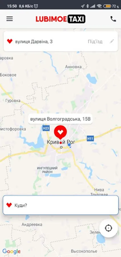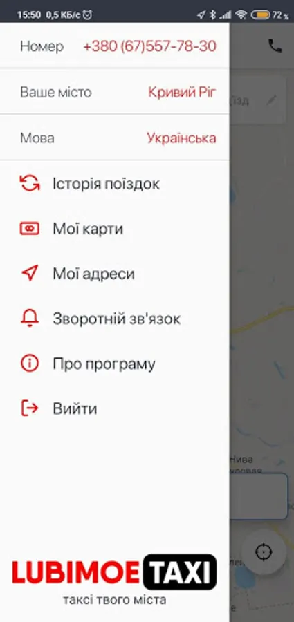Rides with Lubimoe Taxi are available in the following cities: Kharkov, Krivoy Rog, Dnipro (Dnipropetrovsk), Zaporozhye, Kremenchug, Kamenskoe (Dniprodzerzhinsk), Kropyvnytskyi (Kirovograd), Zhitomir, Belaya Tserkov, Chernigov.