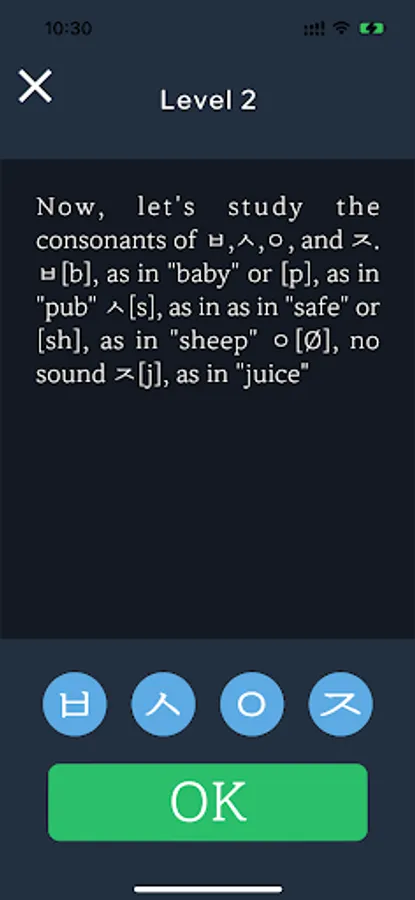 With 한글 도사(Hangul Dosa: K-Korean Master), you can easily learn from Korean alphabets to the real life expressions through playing game! No more tedious memorizing.