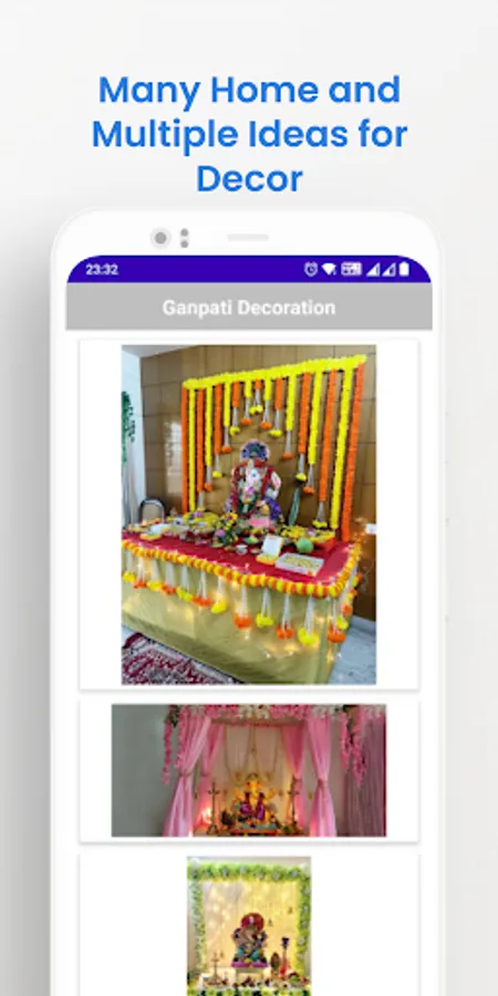 Immerse yourself in the spirit of Ganpati festival by exploring a multitude of decoration themes and ideas, tailored for every taste and every budget. Our app provides easy and excellent decoration ideas for the festival of Lord Ganesha at your fingertips, ready to be implemented at home, in the office or at any public place. Unveil a myriad of decoration concepts that capture the essence of the celebration, ensuring that your decor stands out and impresses everyone.