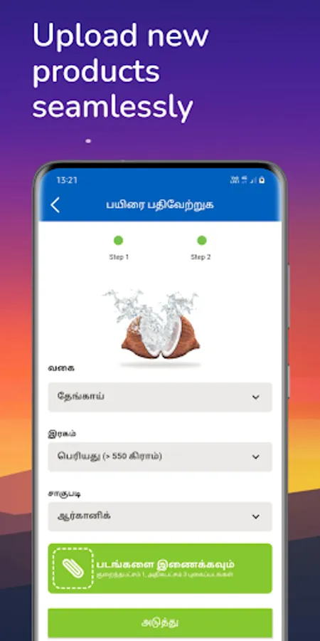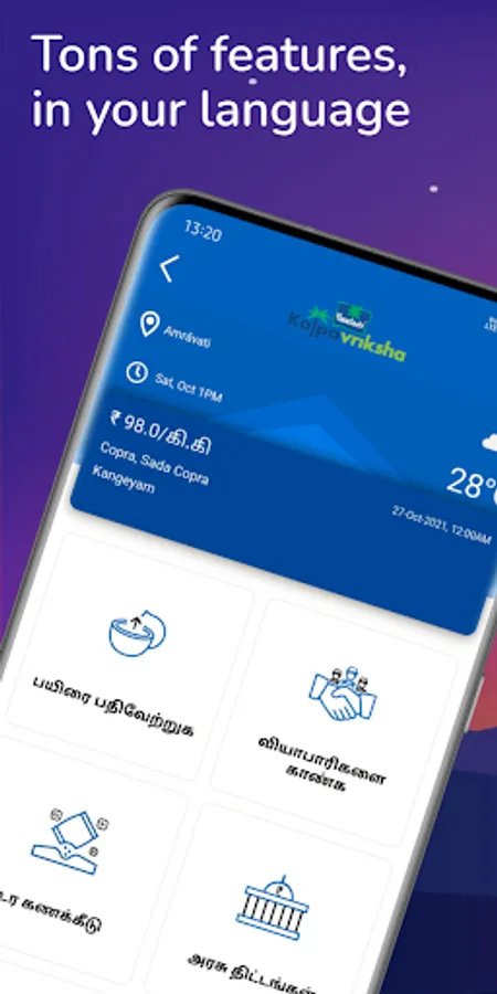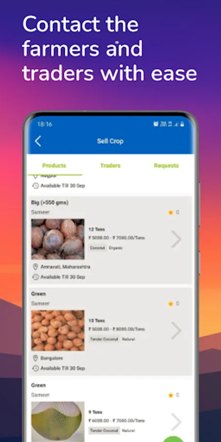 Our app will serve as a platform for farmers and traders to connect for price discovery, buy/sell coconuts, and their related products. Other features such as Market Prices, Government Schemes function with the sole aim of empowering farmers to take the right decisions. Available in multiple languages (Tamil & English) this app has been specifically designed for Indian coconut farmers keeping in mind their preferences and is completely free of cost.