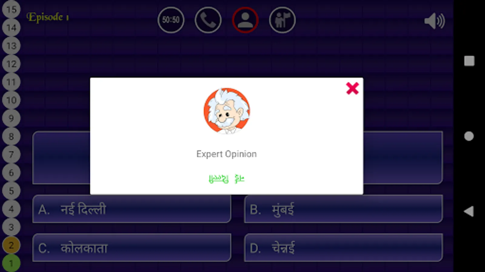 There are four lifelines to help the player becoming millionaire. These lifelines are 50-50, ask a friend using messaging apps like whatsapp, facebook, etc, expert opinion and audience poll. The quizzes are available in both Hindi and English language.