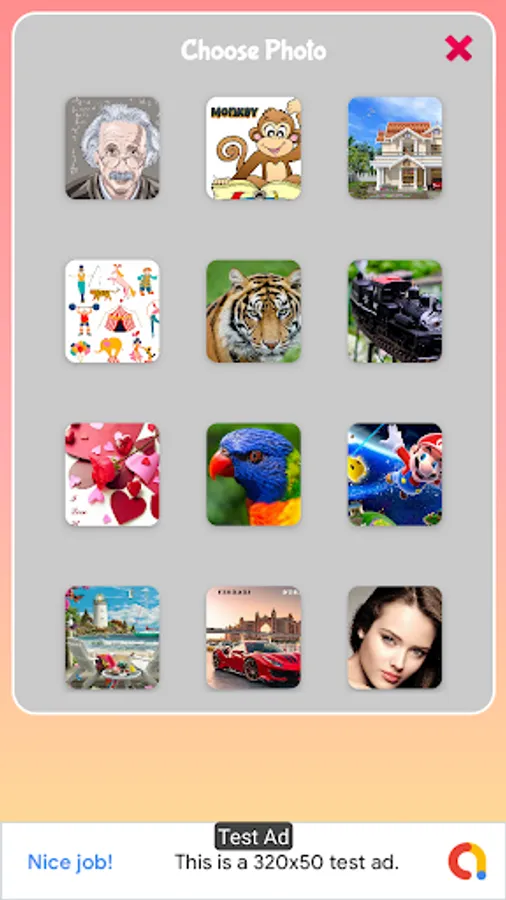 The photos included in the app are from different areas like cartoons, food, faces, nature, technology, logos, movies, models, vehicles etc. and are only suggestive.
