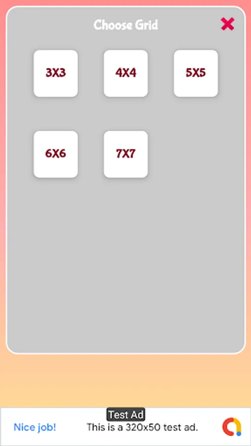 2) Grid size of broken photo – 3X3, 4X4, 5X5, 6X6, 7X7