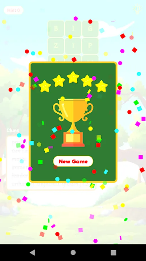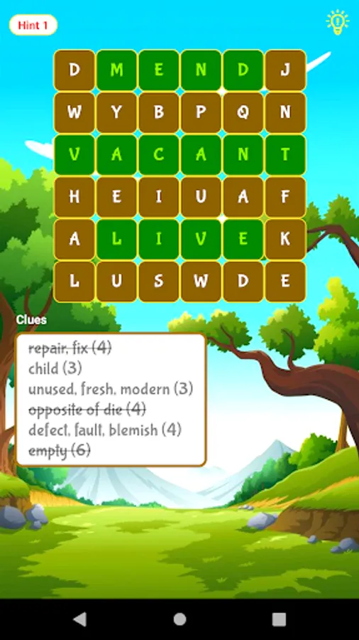 In word hunt app there are puzzles in which words are to be formed from jumbled letters by dragging and dropping the letters. To help users, some clues in the form of synonyms or antonyms are given.