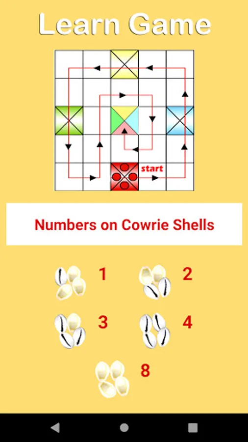 • Shuffle special dice the cowrie shells to get random numbers.
