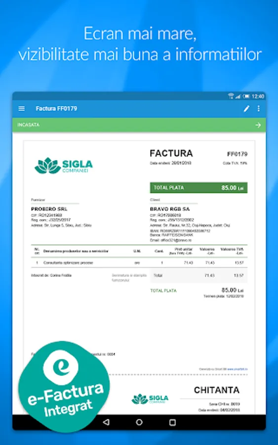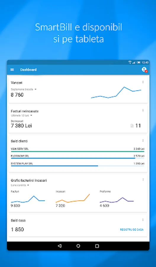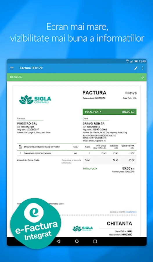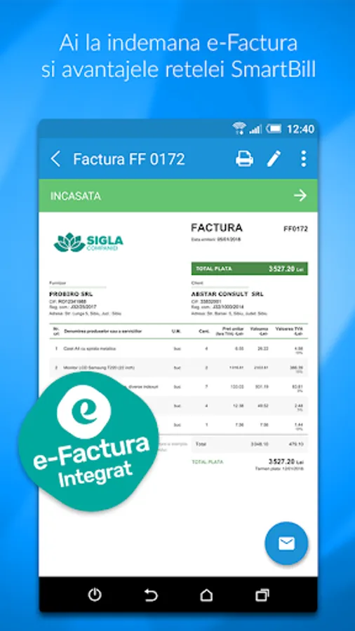 Cu SmartBill iti iei businessul cu tine in buzunar - oriunde, oricand. Acum trimiti e-Factura direct de pe mobil!